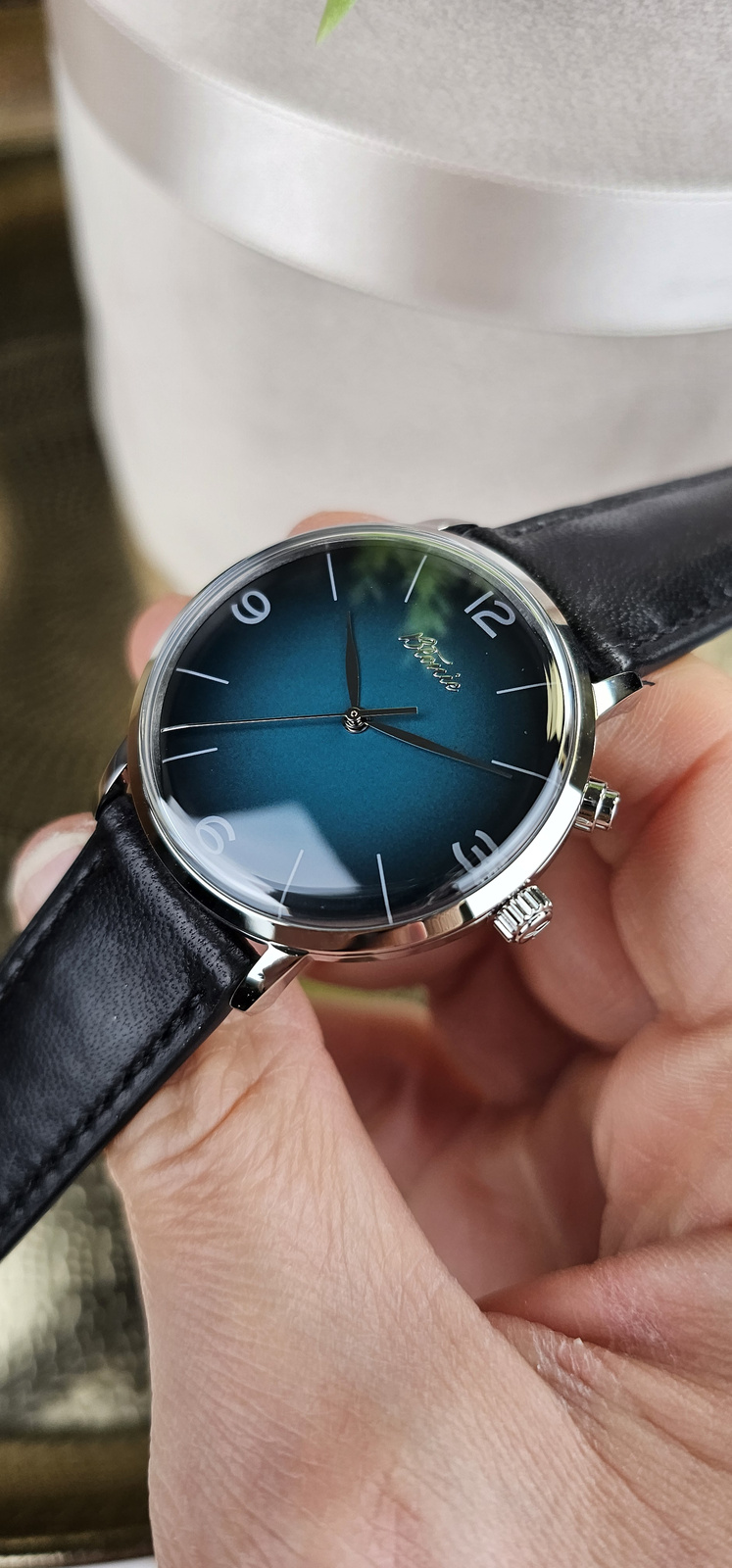 Mechanizm auto-kwarcowy łączy estetykę tradycyjnego zegarka z precyzją współczesnej technologii – podczas noszenia energia ruchu nadgarstka ładuje mechanizm, dzięki czemu użytkownik nie musi martwić się o wymianę baterii. Koperta ze stali szlachetnej 316L w rozmiarze 38 mm układa się idealnie na każdym nadgarstku, a szafirowe podwójnie wypukłe szkło zapewnia odporność na zarysowania.