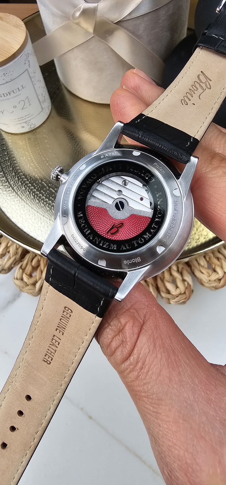 Zegarek Błonie Polan 1 to wyjątkowy model odrodzonej polskiej marki Błonie, która kontynuuje tradycję słynnej Fabryki Zegarków Błonie z lat 50. i 60. XX wieku. Polan 1 to czasomierz zaprojektowany z myślą o osobach ceniących historię, elegancję i niezawodność. Jego klasyczna koperta ze stali szlachetnej o średnicy 40 mm idealnie komponuje się zarówno z garniturem, jak i codziennym stylem. Sercem zegarka jest sprawdzony mechanizm automatyczny z naciągiem ręcznym, gwarantujący precyzję i długowieczność użytkowania. Tarcza zegarka Błonie Polan 1 nawiązuje do oryginalnych modeli Polan z lat 60., zachwyca minimalistycznym układem i eleganckimi indeksami, a dzięki szkłu szafirowemu jest odporna na zarysowania. Pasek ze skóry naturalnej dodaje całości ponadczasowego charakteru i komfortu noszenia. To zegarek, który nie tylko mierzy czas, ale również przypomina o dziedzictwie polskiego zegarmistrzostwa. Błonie Polan 1 to idealny wybór dla kolekcjonerów, miłośników polskiej historii oraz osób poszukujących zegarka klasy premium w atrakcyjnej cenie. Dzięki unikalnemu wzornictwu, wysokiej jakości wykonania oraz prestiżowi marki, zegarek Polan 1 z pewnością stanie się wyjątkowym elementem każdej kolekcji i świetnym pomysłem na elegancki prezent.