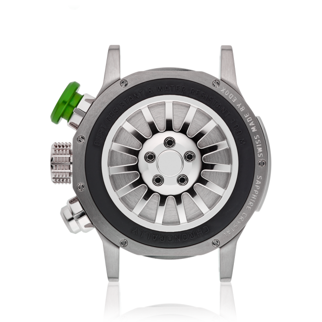Imponująca koperta o średnicy 48 mm, wykonana z lekkiego i odpornego tytanu, gwarantuje dużą wytrzymałość przy zachowaniu komfortu noszenia – waga zegarka to jedynie 130 g. Charakterystycznym elementem serii są powiększone przyciski chronografu, które zapewniają intuicyjną obsługę nawet w rękawicach. Całość zabezpiecza szafirowe szkło, odporne na zarysowania.