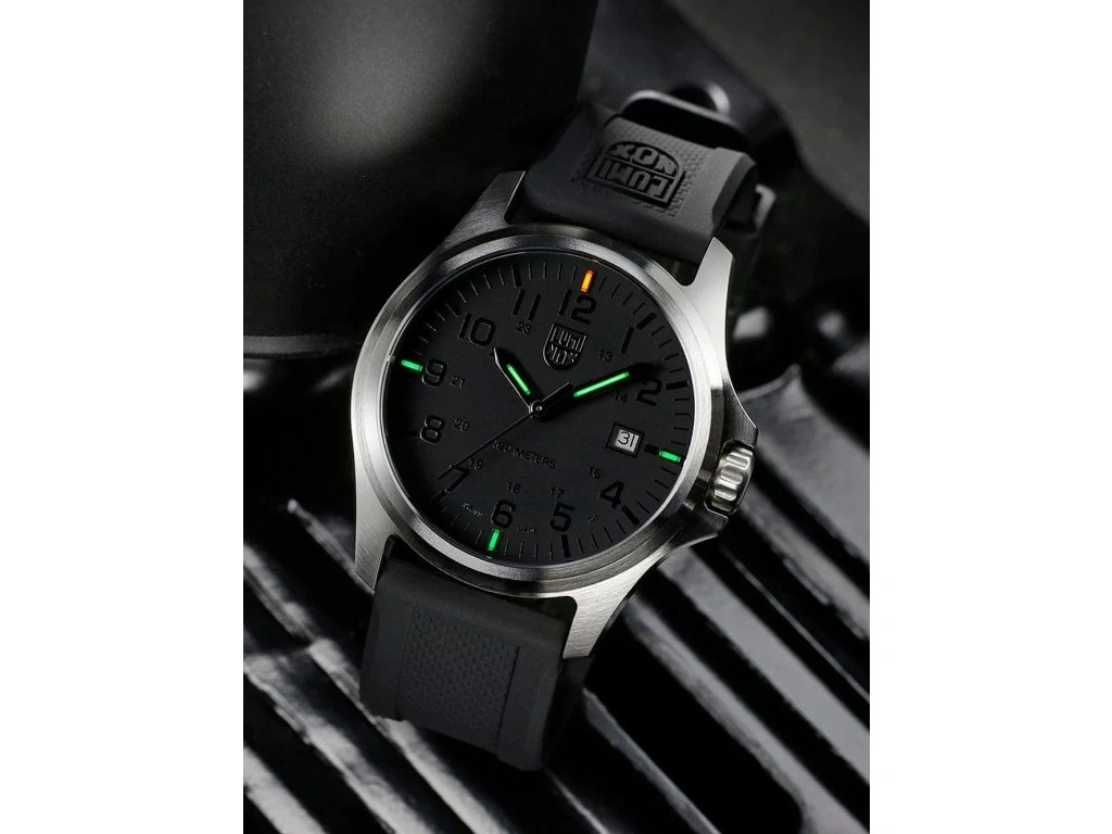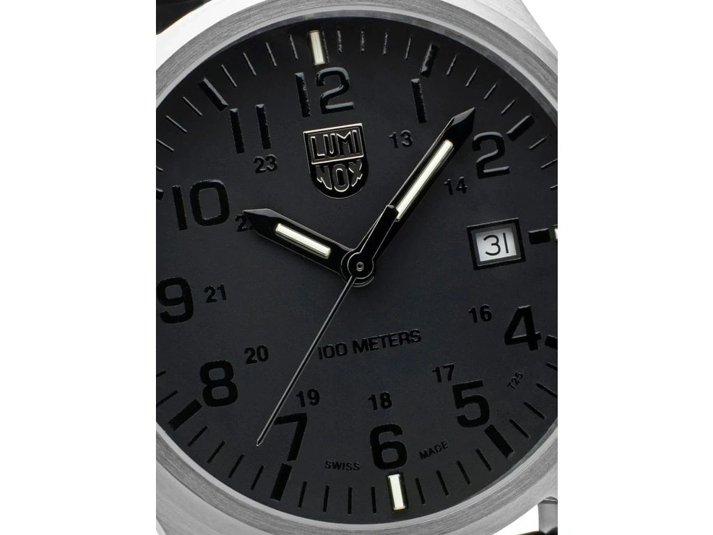 Tarcza w intensywnym czarnym kolorze z cyframi arabskimi oferuje łatwy odczyt godziny, a Luminox Light Technology zapewnia doskonałą widoczność w ciemnościach. Zegarek posiada także utwardzane szkło mineralne, które jest bardziej odporne na zarysowania i pęknięcia.