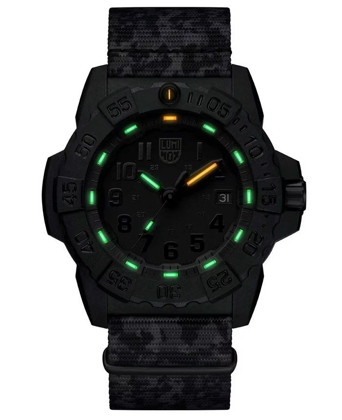 Czytelność w każdych warunkach zapewnia trytowy system podświetlenia Luminox, dzięki któremu wskazówki i indeksy świecą nieprzerwanie przez wiele lat – bez konieczności doświetlania czy ładowania. Zegarek wyposażono w obrotowy bezel, umożliwiający kontrolę czasu nurkowania, oraz datownik, zwiększający funkcjonalność w codziennym użytkowaniu.