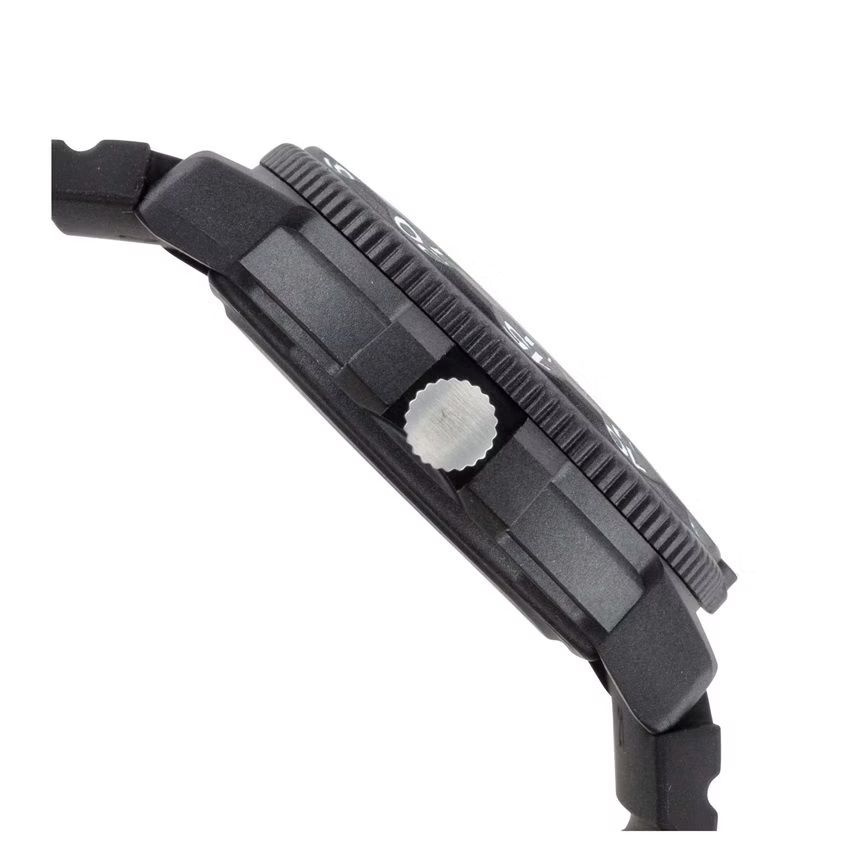 Koperta o średnicy 43 mm i grubości 11 mm wykonana jest z lekkiego i odpornego Carbon Compund, co zapewnia komfort noszenia przy zachowaniu wysokiej wytrzymałości. Czarny kolor koperty nadaje zegarkowi nowoczesny, taktyczny charakter, a przykręcany dekiel z carbonu dodatkowo chroni mechanizm.