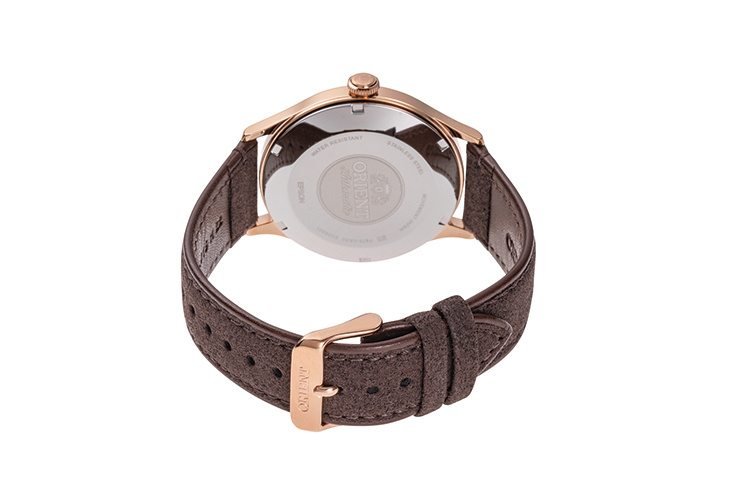 ZEGAREK ORIENT RA-AC0P04Y10B to wyrafinowany zegarek mechaniczny o średnicy 42,00 mm z serii ORIENT ma elegancką kopertę ze stali nierdzewnej pokrytą kolorem różowego złota, brązową tarczę i pasek ze skóry o fakturze skóry krokodyla. Dopełnieniem jego klasycznej estetyki są stylowe złote wskazówki i gustownie rozmieszczone znaczniki godzin, wygodny datownik, szczegółowy pierścień rozdziału oraz ręcznie nakręcana koronka z automatycznym naciągiem. Elegancki RA-AC0P04Y10B obsługuje wodoodporność do 30 metrów.