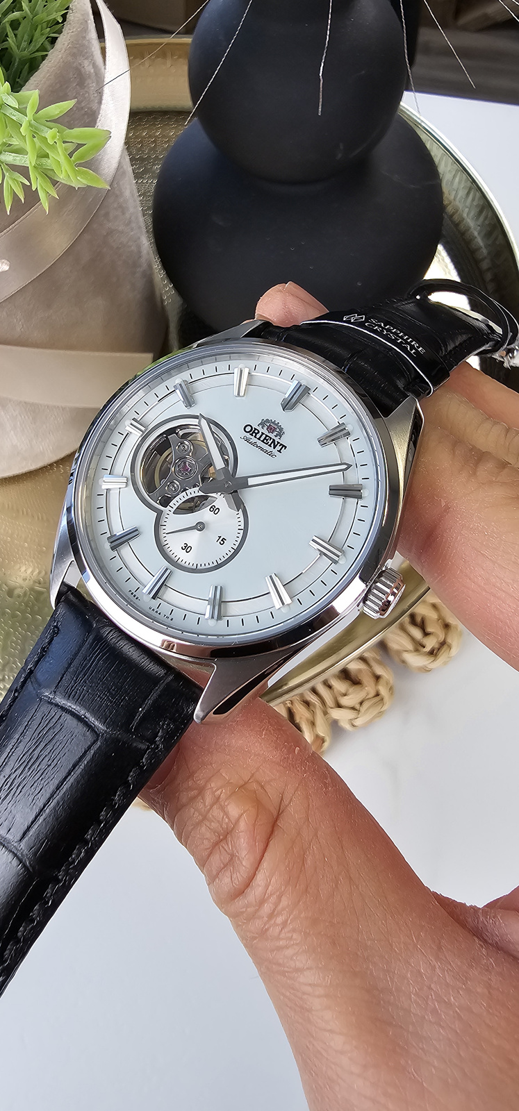 ZEGAREK ORIENT Mechanical Contemporary Watch RA-AR0004S30B Ten nowy zegarek, który nazywamy „Współczesnym półszkieletem z małą sekundą”, zostaje wprowadzony do naszej kolekcji jako nowy, definitywny model, który poprowadzi kolekcję Contemporary. Aby wzmocnić kolekcję Contemporary modelem półszkieletowym i małym sekundnikiem, opracowaliśmy nowy „Cal. F6S”, która dodaje funkcję małej sekundy do naszego standardowego Cal.F6. Ten nowy kaliber doskonale równoważy każdy element tarczy — szkielet na godzinie 9, mały sekundnik na godzinie 6 oraz logo ORIENT & Lion na godzinie 12. Półszkieletowa, nachodząca na siebie mała sekundowa tarcza zwiększa zainteresowanie i umożliwia wgląd w ruch koło ratunkowe. Ponadto dwuwarstwowa tarcza zapewnia głęboki, trójwymiarowy wygląd, przyciągając wzrok do ruchu wskazówek godzinowej i minutowej. Koperta o wielkości 40,8 mm ma szafirowe szkło, które podkreśla piękno mechanicznego mechanizmu, a RA-AR0004S30B obsługuje wodoszczelność do 50 metrów.