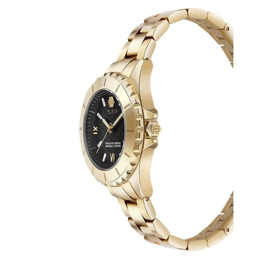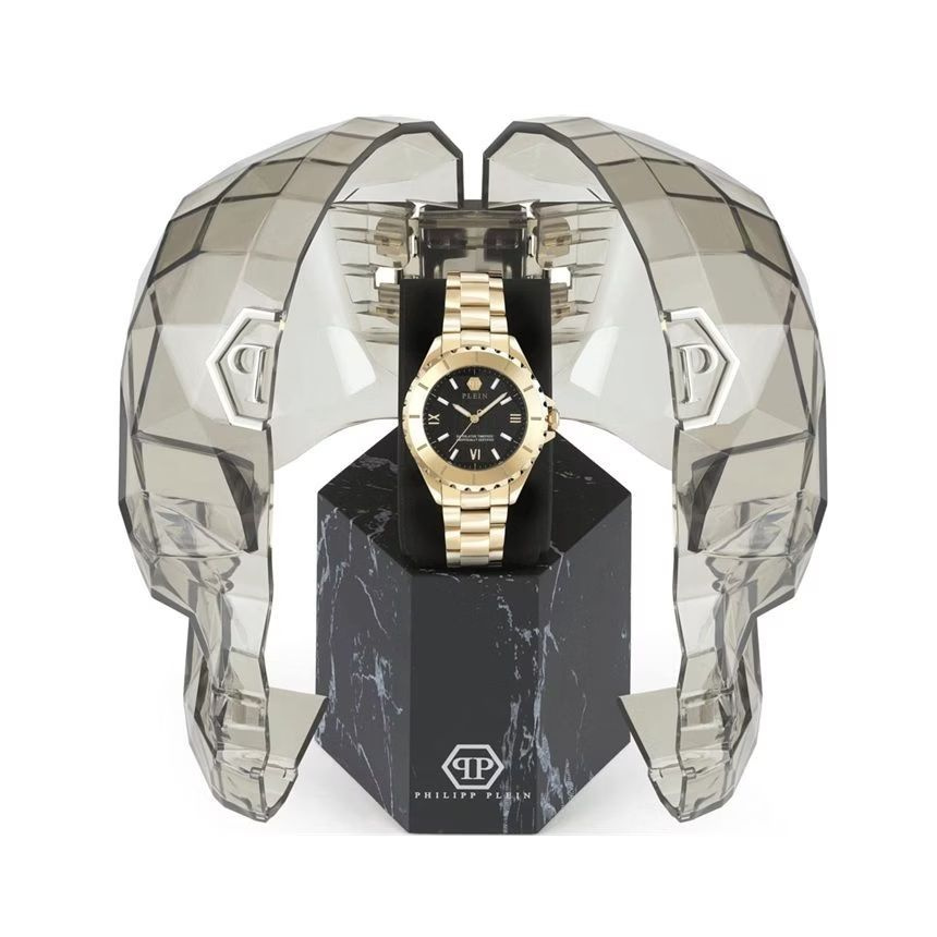 Philipp Plein Heaven Rock Couture PWPOA0524 to damski zegarek, który łączy luksusowy połysk złota z głęboką czernią tarczy, tworząc wyjątkowo elegancką i wyrazistą kompozycję. To model zaprojektowany z myślą o kobietach, które lubią modę premium, biżuteryjne dodatki i chcą, aby zegarek był mocnym akcentem stylizacji.