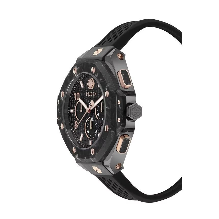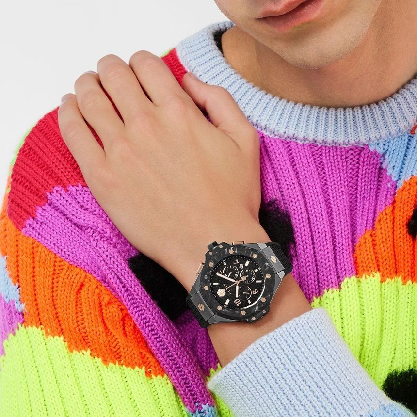 Philipp Plein Hexar Chrono Royal PWPRA0524 to wyrazisty męski zegarek o dynamicznym, sportowym charakterze i luksusowym wykończeniu. Całkowicie czarna stylistyka, duża koperta 46 mm oraz funkcja chronografu sprawiają, że model przyciąga uwagę i podkreśla zdecydowany, nowoczesny styl właściciela. To zegarek dla mężczyzn, którzy cenią modę premium, mocne akcenty i funkcjonalność.