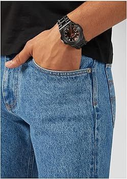 Solidna koperta o średnicy 45 mm i grubości 11 mm, wykonana ze stali szlachetnej w czarnym wykończeniu, podkreśla sportowo-luksusowy styl zegarka. Zintegrowana czarna bransoleta ze stali nierdzewnej z zapięciem motylkowym typu deployment buckle zapewnia wysoki komfort noszenia i stabilność na nadgarstku. Wodoszczelność 5 ATM pozwala na bezpieczne użytkowanie zegarka w codziennych sytuacjach, takich jak mycie rąk czy deszcz.