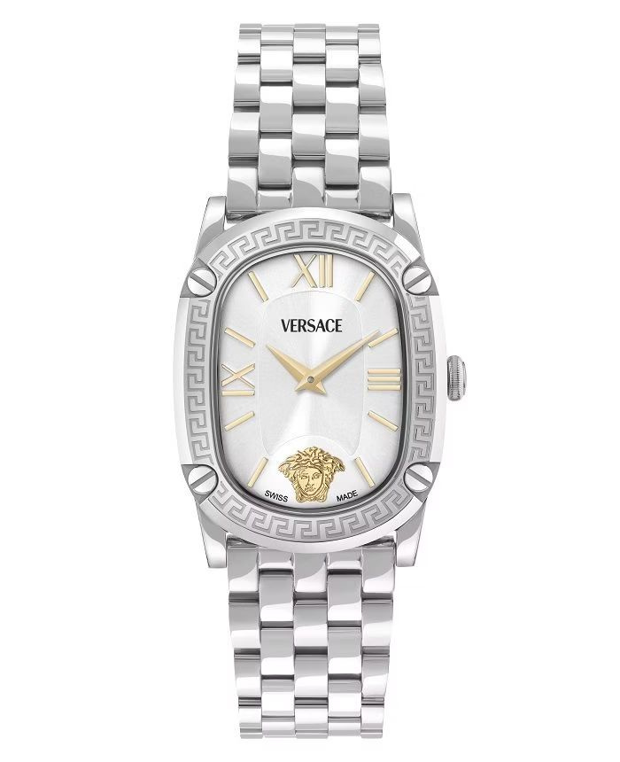Versace Greca Couture Lady VE1B01125 to elegancki damski zegarek łączący luksusowy design z nowoczesnym stylem. Owalna koperta o średnicy 29 mm i grubości 8 mm wykonana jest ze stali nierdzewnej w kolorze srebrnym. Zegarek wyposażony jest w precyzyjny mechanizm kwarcowy, analogowe wskazania godzin i minut oraz odporne na zarysowania szkło szafirowe. Bezel jest stały, a dno koperty stalowe i wkręcane. Tarcza w srebrnym kolorze podkreśla klasyczny charakter modelu. Stalowa bransoleta ze zapięciem typu deployment buckle zapewnia komfort noszenia. Wodoszczelność 5 ATM gwarantuje odporność na zachlapania. Lug width wynosi 18 mm. Zegarek doskonale sprawdzi się zarówno w codziennych, jak i eleganckich stylizacjach.