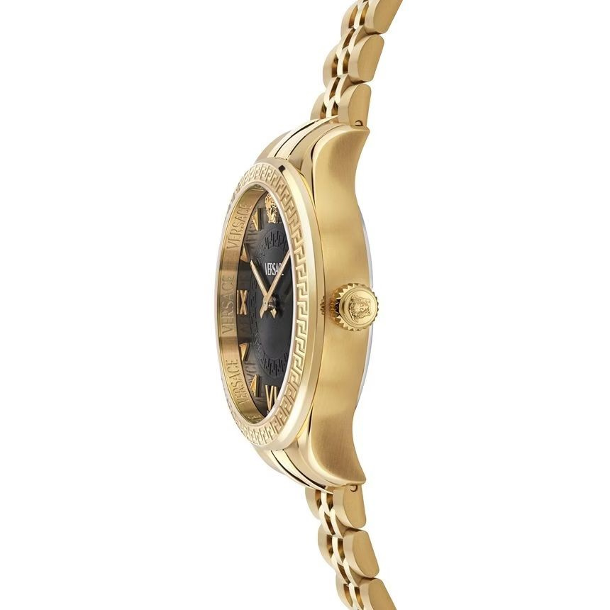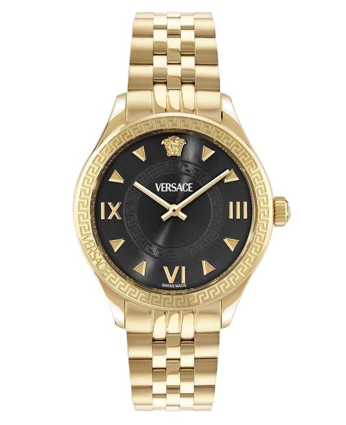 Zegarek Versace Hellenyium Lady VE2S01425 to kwintesencja elegancji i pewności stylu. Czarna tarcza zestawiona z złotą kopertą i bransoletą ze stali nierdzewnej tworzy ponadczasowe, luksusowe połączenie, które nigdy nie wychodzi z mody. To model, który doskonale łączy funkcję zegarka z rolą wyrazistej biżuterii premium.