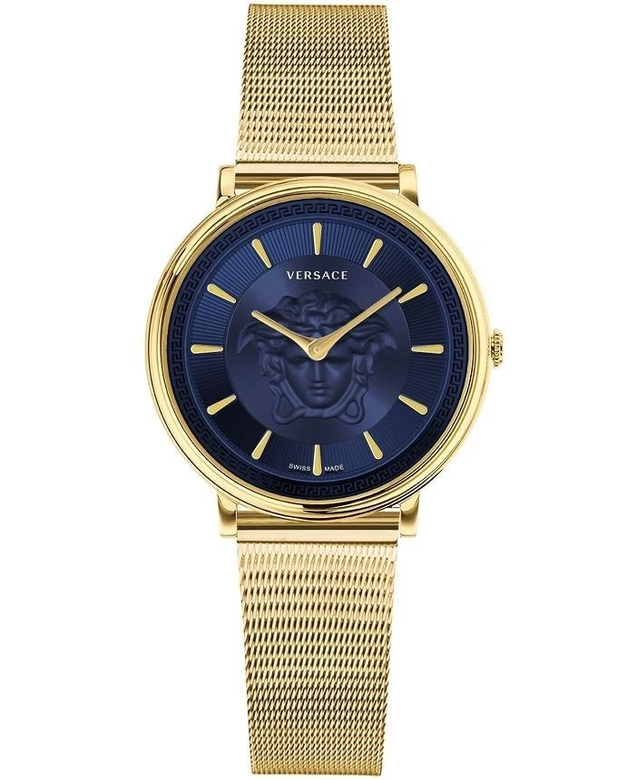 Zegarek Versace V-Circle Lady VE8104021 to połączenie klasycznej elegancji z nowoczesnym designem. Niebieska tarcza i złota koperta sprawiają, że jest to doskonały wybór na wyjątkowe okazje, a także codzienne stylizacje, które wymagają odrobiny luksusu.