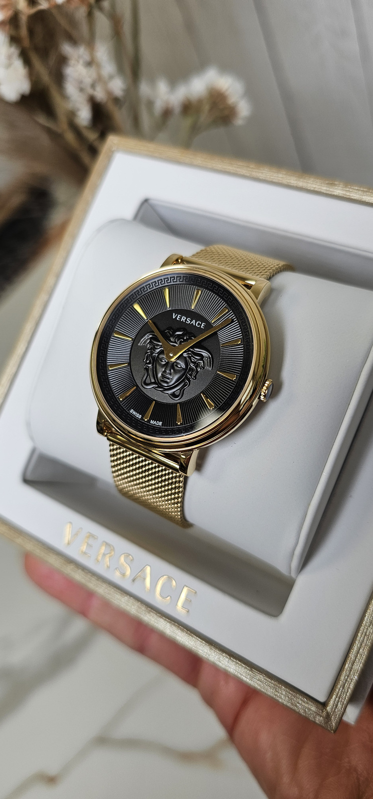 Jeden z najpopularniejszych domów mody VERSACE został założony w Mediolanie w 1978r., przez niezwykłego projektanta i wizjonera w świecie mody jakim był Gianni Versace. Marka ta wyraźnie odbiegała od innych ze względu na oryginalność i odwagę w swoich projektach. Gianni Versace, geniusz mody, powtarzał „styl to sposób na wyrażenie kim jesteś bez konieczności otwierania ust”. Jego własny styl cechował przepych, nadmiar, bogactwo. Kochał barokowe wzory i zwierzęce cętki. Znakiem jego domu mody stała się głowa Meduzy. Do dziś jego nazwiskiem , oprócz ubrań , sygnowane są dobra luksusowe w postaci kosmetyków, biżuterii, perfum czy zegarków. Czasomierze Versace posiadają unikatowe i awangardowe wzornictwo jakiego nie znajdziemy w innych markach. Są wykonane z niezwykłą starannością z wykorzystaniem najwyższej jakości materiałów – szafirowe szkła, ręcznie produkowane paski skórzane, stal szlachetna często powlekana złotem. Kolekcje zegarków są zróżnicowane pod względem stylistyki i wzornictwa. Jedno pozostaje niezmienne czyli luksusowy charakter każdego z nich.