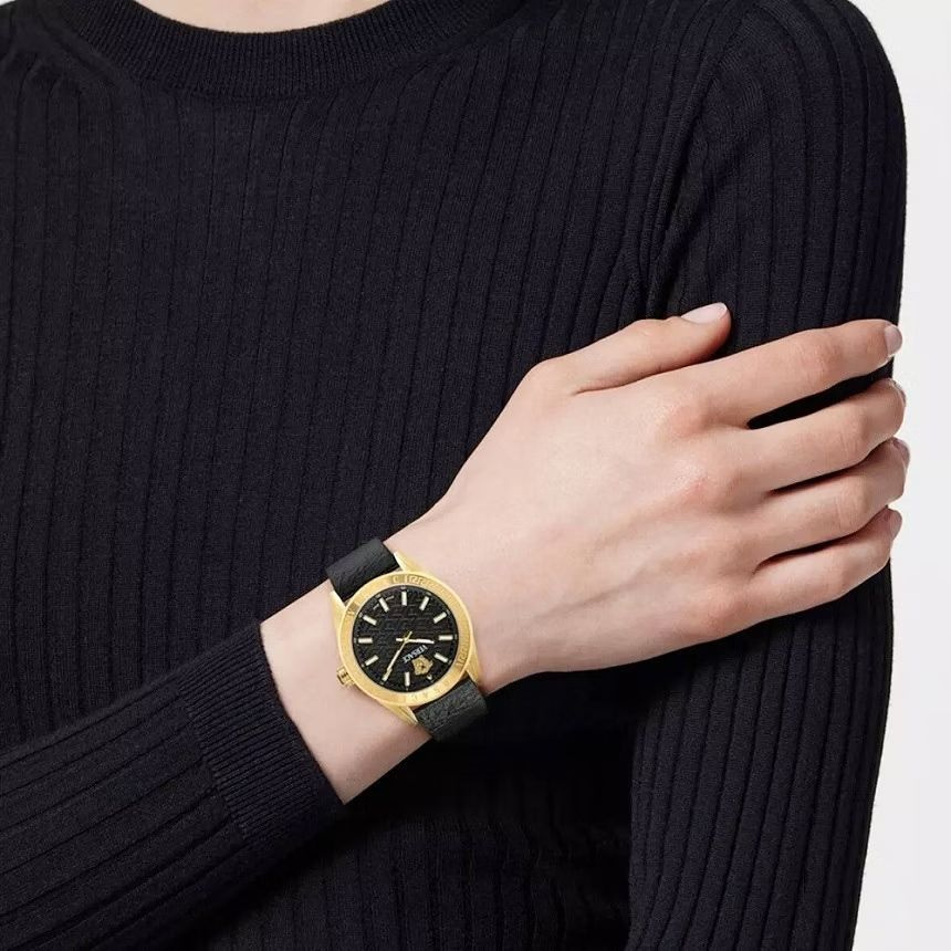 Jeden z najpopularniejszych domów mody VERSACE został założony w Mediolanie w 1978r., przez niezwykłego projektanta i wizjonera w świecie mody jakim był Gianni Versace. Marka ta wyraźnie odbiegała od innych ze względu na oryginalność i odwagę w swoich projektach. Gianni Versace, geniusz mody, powtarzał „styl to sposób na wyrażenie kim jesteś bez konieczności otwierania ust”. Jego własny styl cechował przepych, nadmiar, bogactwo. Kochał barokowe wzory i zwierzęce cętki. Znakiem jego domu mody stała się głowa Meduzy. Do dziś jego nazwiskiem , oprócz ubrań , sygnowane są dobra luksusowe w postaci kosmetyków, biżuterii, perfum czy zegarków. Czasomierze Versace posiadają unikatowe i awangardowe wzornictwo jakiego nie znajdziemy w innych markach. Są wykonane z niezwykłą starannością z wykorzystaniem najwyższej jakości materiałów – szafirowe szkła, ręcznie produkowane paski skórzane, stal szlachetna często powlekana złotem. Kolekcje zegarków są zróżnicowane pod względem stylistyki i wzornictwa. Jedno pozostaje niezmienne czyli luksusowy charakter każdego z nich.