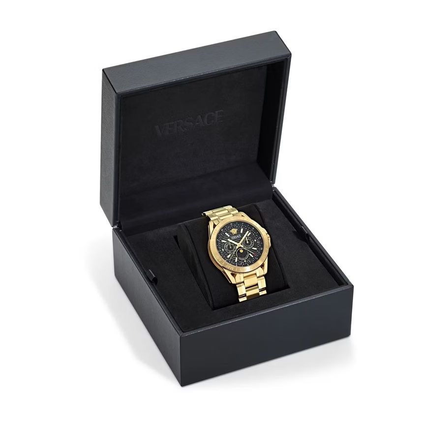 Versace V-Galaxy Moonphase VE0K00425 to wyjątkowy zegarek męski klasy premium, który łączy wyrazisty, luksusowy design z efektowną komplikacją moonphase. Model ten został stworzony dla mężczyzn, którzy oczekują od zegarka czegoś więcej niż klasycznego pomiaru czasu – chcą stylu, charakteru i prestiżu.