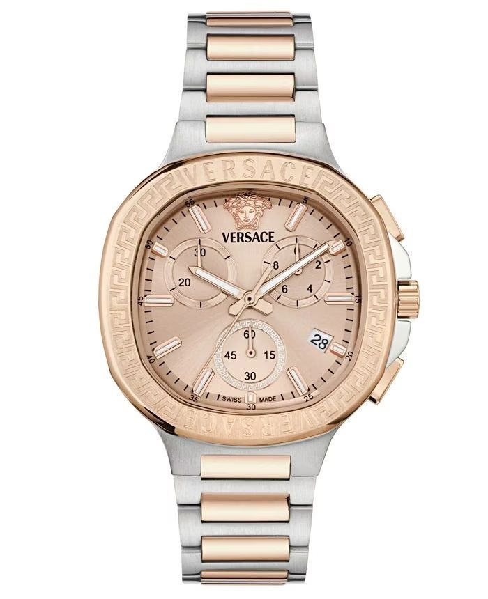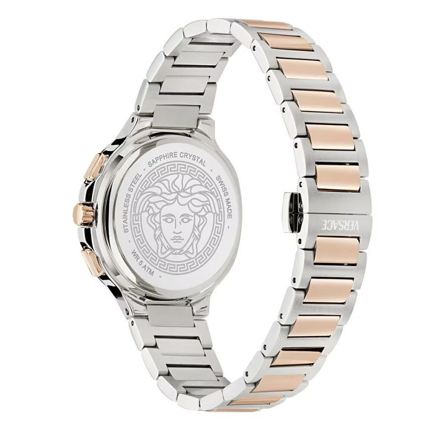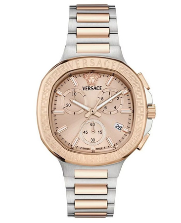 Versace V-Lady Chrono Square VEVCA0524 to luksusowy zegarek damski z chronografem, który łączy sportową funkcjonalność z elegancją charakterystyczną dla domu mody Versace. Wariant z srebrną tarczą oraz bransoletą bicolor to najbardziej uniwersalna i ponadczasowa odsłona kolekcji V-Lady Chrono Square – idealna zarówno do codziennych stylizacji, jak i na bardziej formalne okazje.