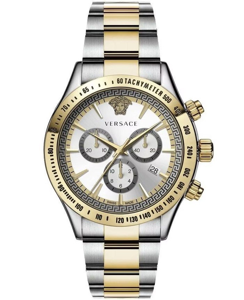 Jeden z najpopularniejszych domów mody VERSACE został założony w Mediolanie w 1978r., przez niezwykłego projektanta i wizjonera w świecie mody jakim był Gianni Versace. Marka ta wyraźnie odbiegała od innych ze względu na oryginalność i odwagę w swoich projektach. Gianni Versace, geniusz mody, powtarzał „styl to sposób na wyrażenie kim jesteś bez konieczności otwierania ust”. Jego własny styl cechował przepych, nadmiar, bogactwo. Kochał barokowe wzory i zwierzęce cętki. Znakiem jego domu mody stała się głowa Meduzy. Do dziś jego nazwiskiem , oprócz ubrań , sygnowane są dobra luksusowe w postaci kosmetyków, biżuterii, perfum czy zegarków. Czasomierze Versace posiadają unikatowe i awangardowe wzornictwo jakiego nie znajdziemy w innych markach. Są wykonane z niezwykłą starannością z wykorzystaniem najwyższej jakości materiałów – szafirowe szkła, ręcznie produkowane paski skórzane, stal szlachetna często powlekana złotem. Kolekcje zegarków są zróżnicowane pod względem stylistyki i wzornictwa. Jedno pozostaje niezmienne czyli luksusowy charakter każdego z nich.