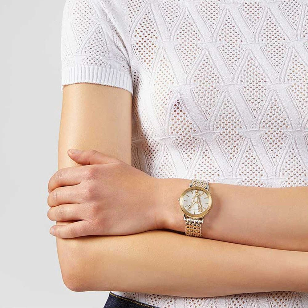 Drobna bransoletka w wersji bikolorowej to element, który dodaje zegarkowi lekkości i elegancji. Jest zarówno stylowa, jak i funkcjonalna, zapewniając komfort noszenia. Bransoletka łączy różowe złoto i srebro, co nadaje jej nowoczesny i harmonijny wygląd.